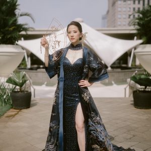 The dress will be resized according to client’s size (it can be altered from XS – L). Accessories (chinese fan, belt, and hair pin) are not included
