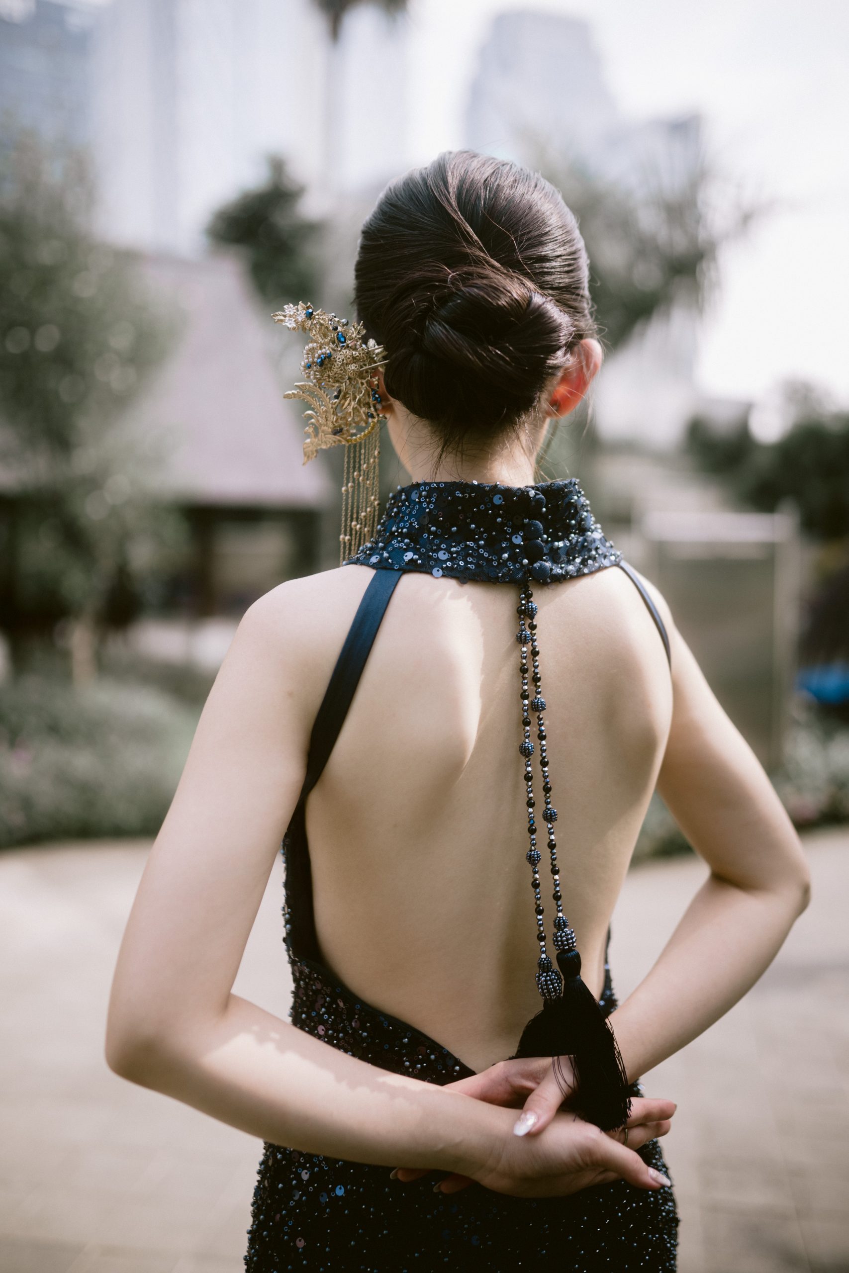 Backless Midnight Blue Cheongsam