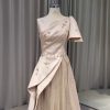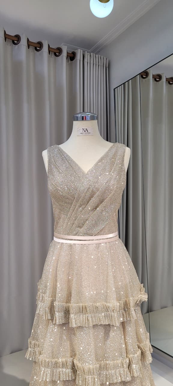 Champagne glitter A-line dress with tiered skirt