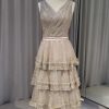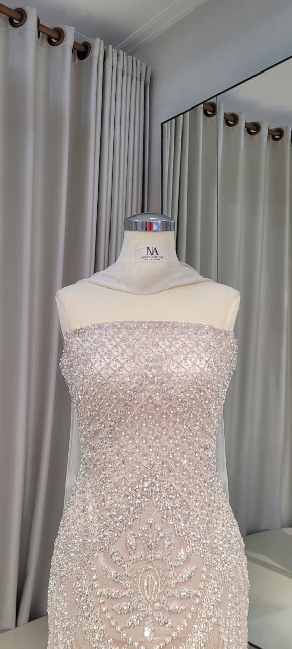 Full lace champagne dress with pencil skirt and shawl