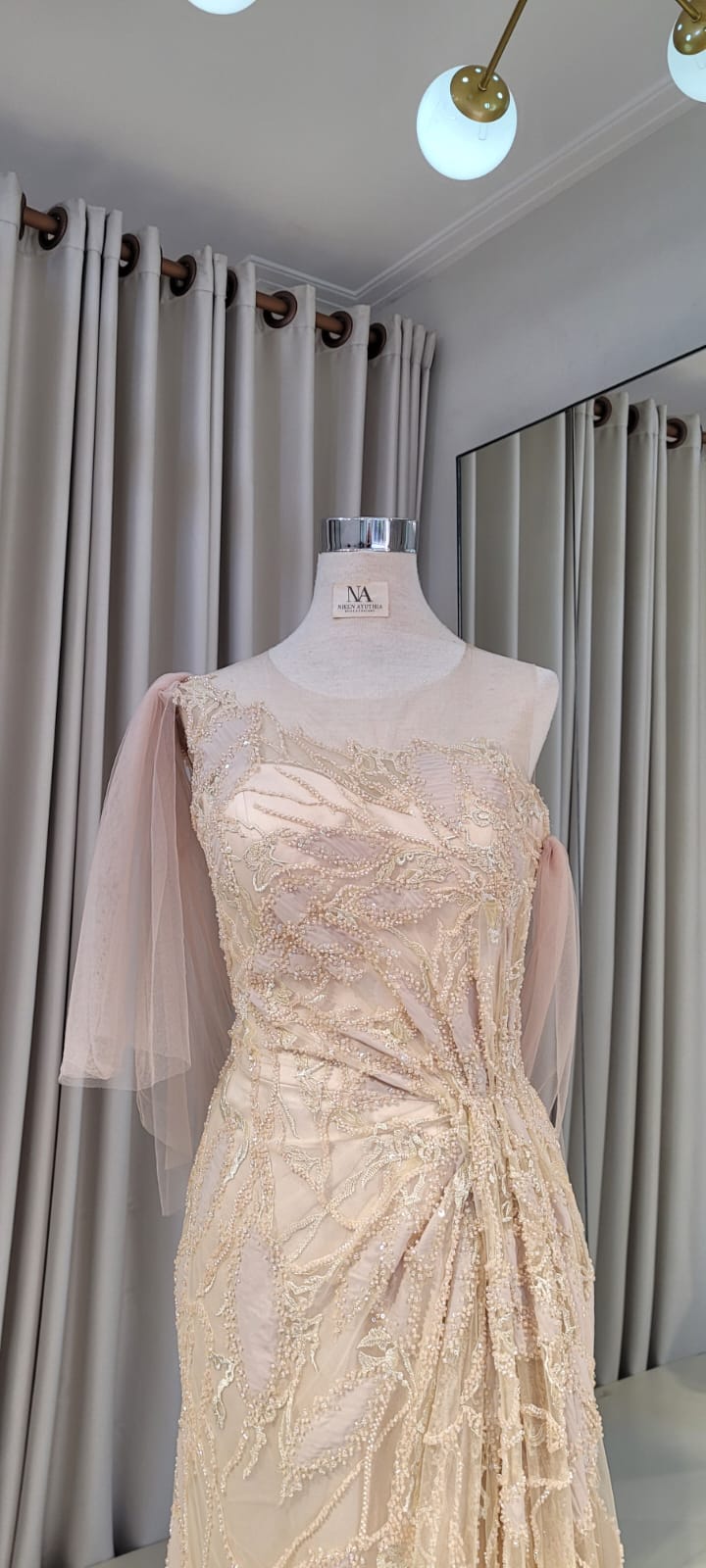 Full lace champagne mermaid dress with one shoulder