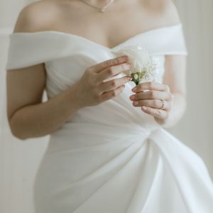 Never go wrong with this timeless full lace mermaid dress with deep heart shape neckline. The off shoulder and wrinkled part detail on the waist enhance the whole silhouette and add more feminine look. Combine the dress with our matching satin outer for your holy matrimony for different appearance.
