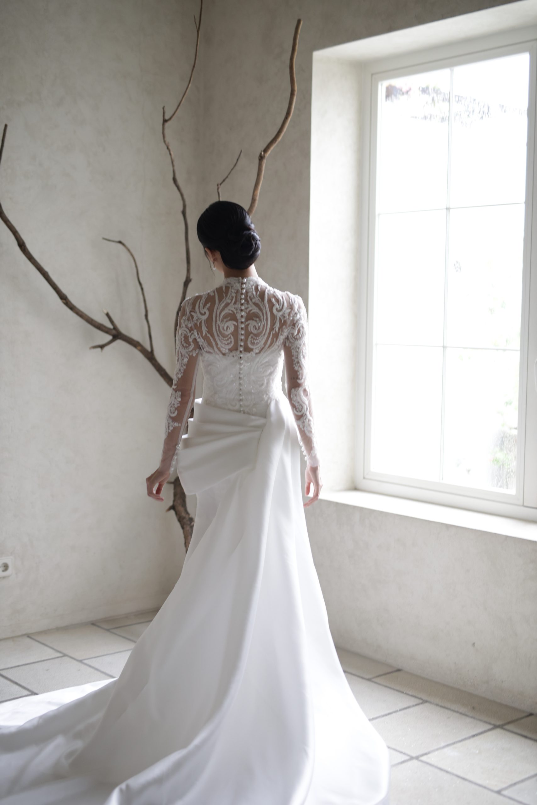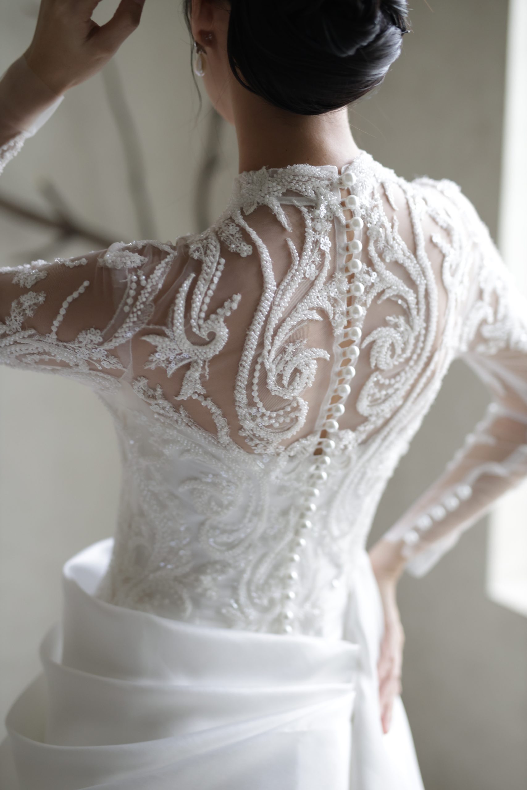 This can be adjusted to bride’s size (generally from XS – M)