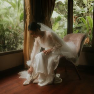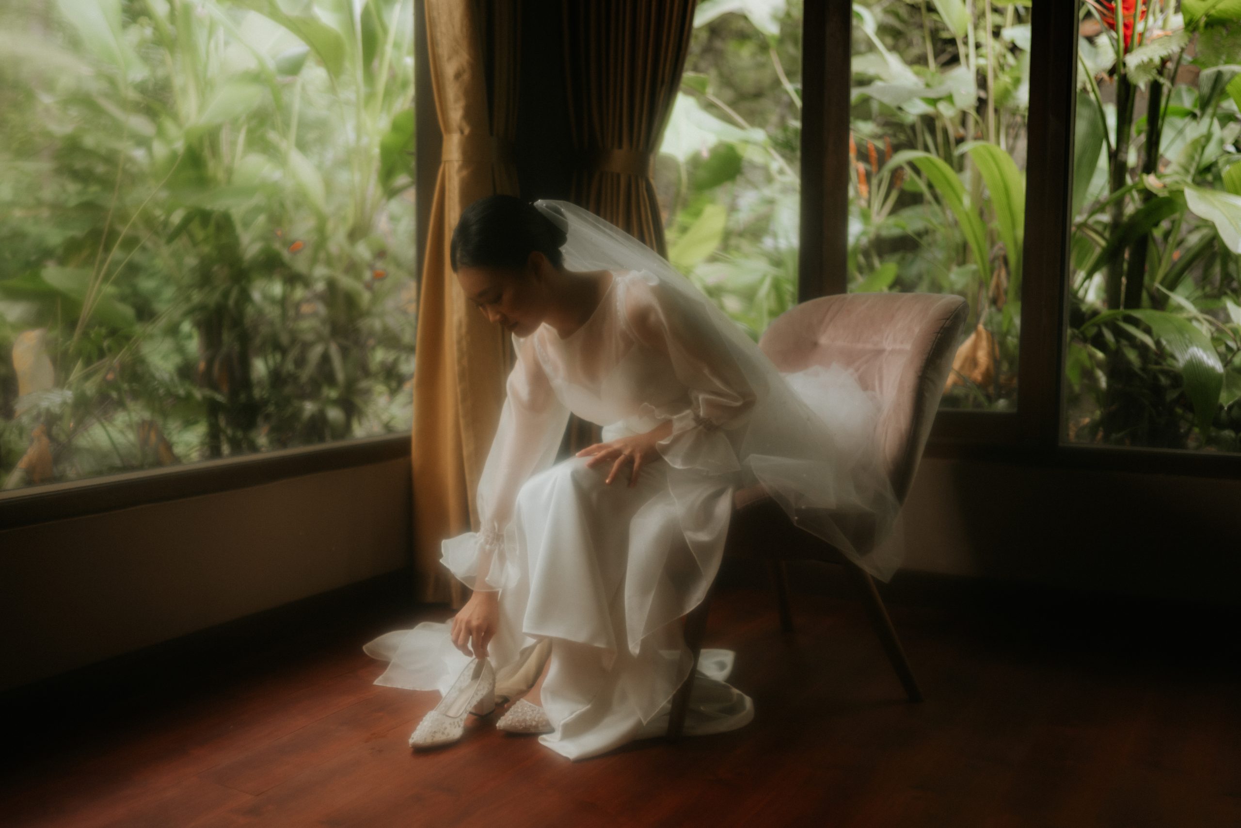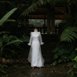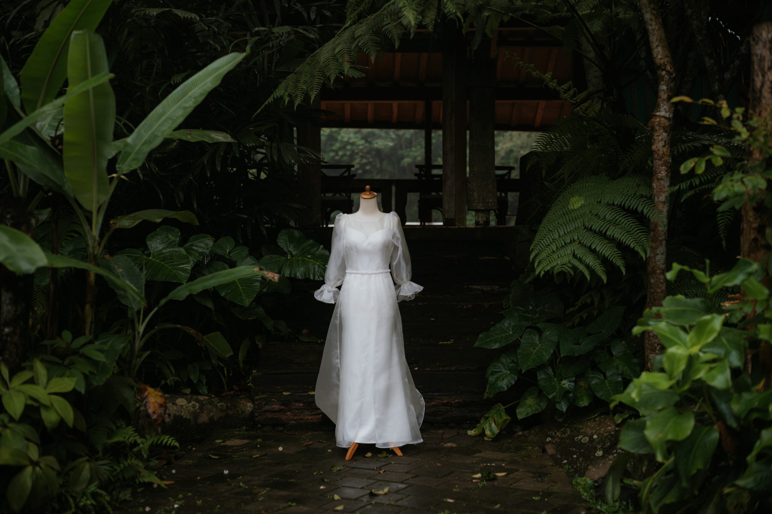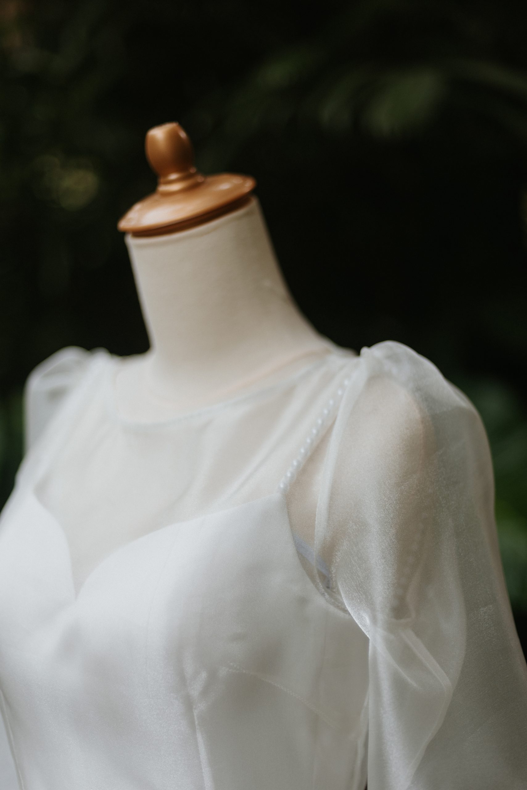 Looking for simple yet romantic dress for your big day? Pull off three different looks with our versatile low back organza dress.