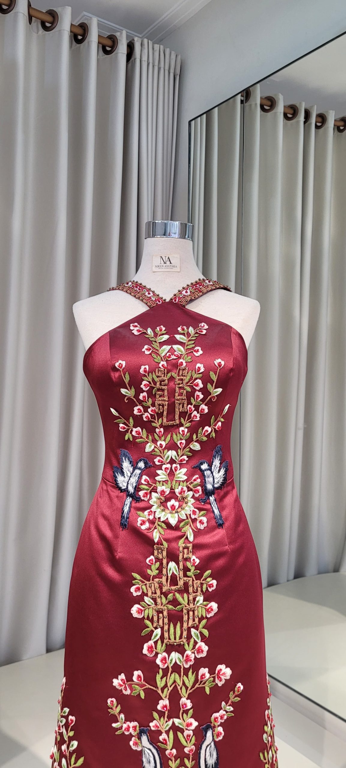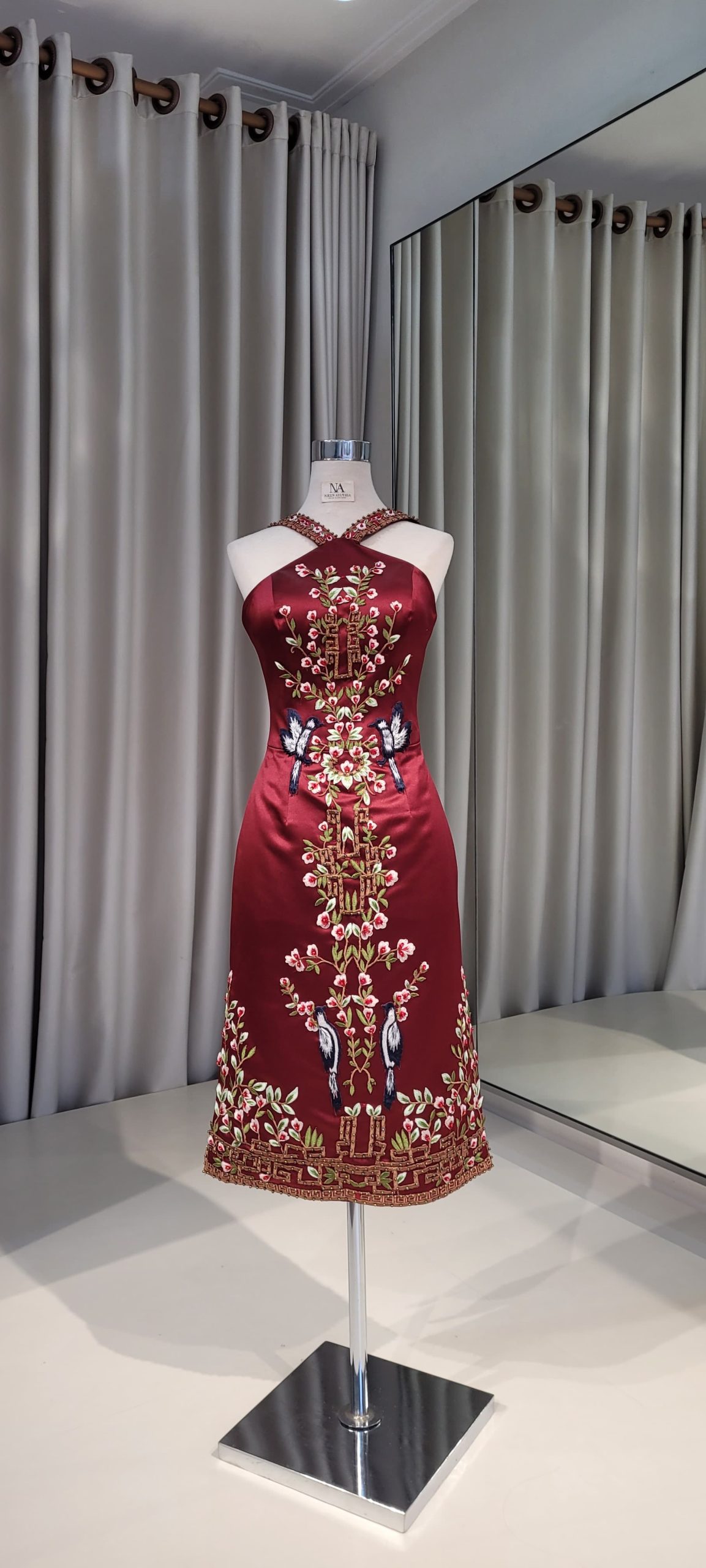The dress will be resized according to client’s size (it can be altered from XS – M). Accessories (chinese fan, belt, and hair pin) are not included