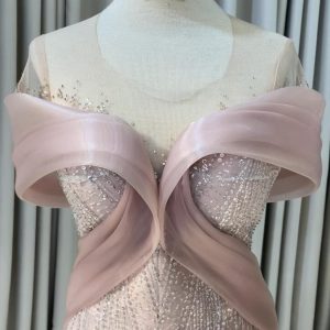 Full lace rose gold mermaid dress with off shoulder and short sleeves